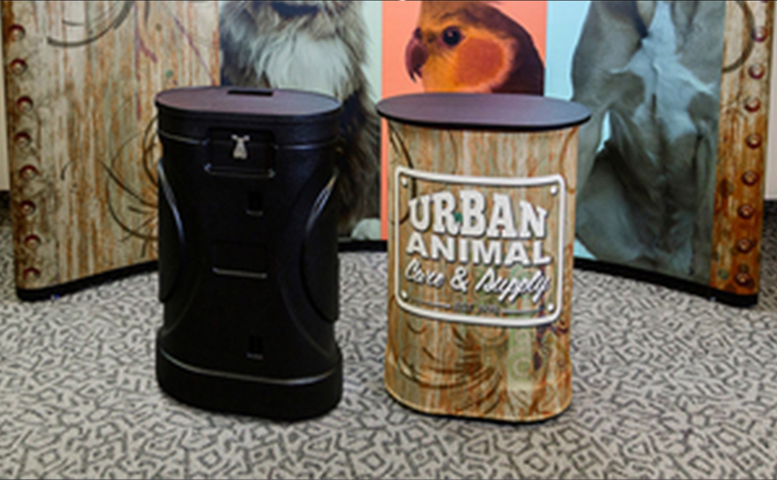 Cost-efficient case table, Transform your display case(s) into a table. You get an additional work surface and branding opportunity.