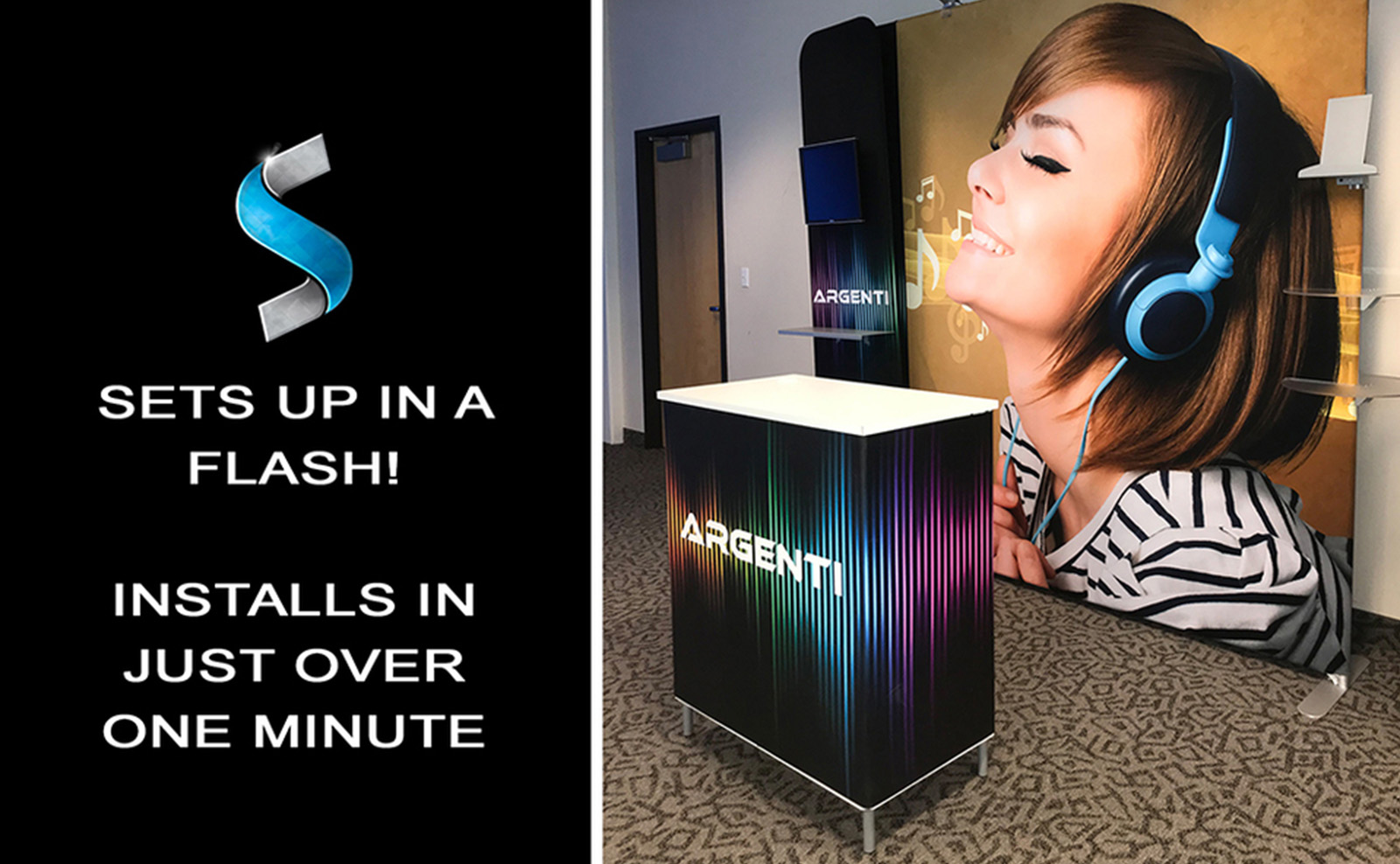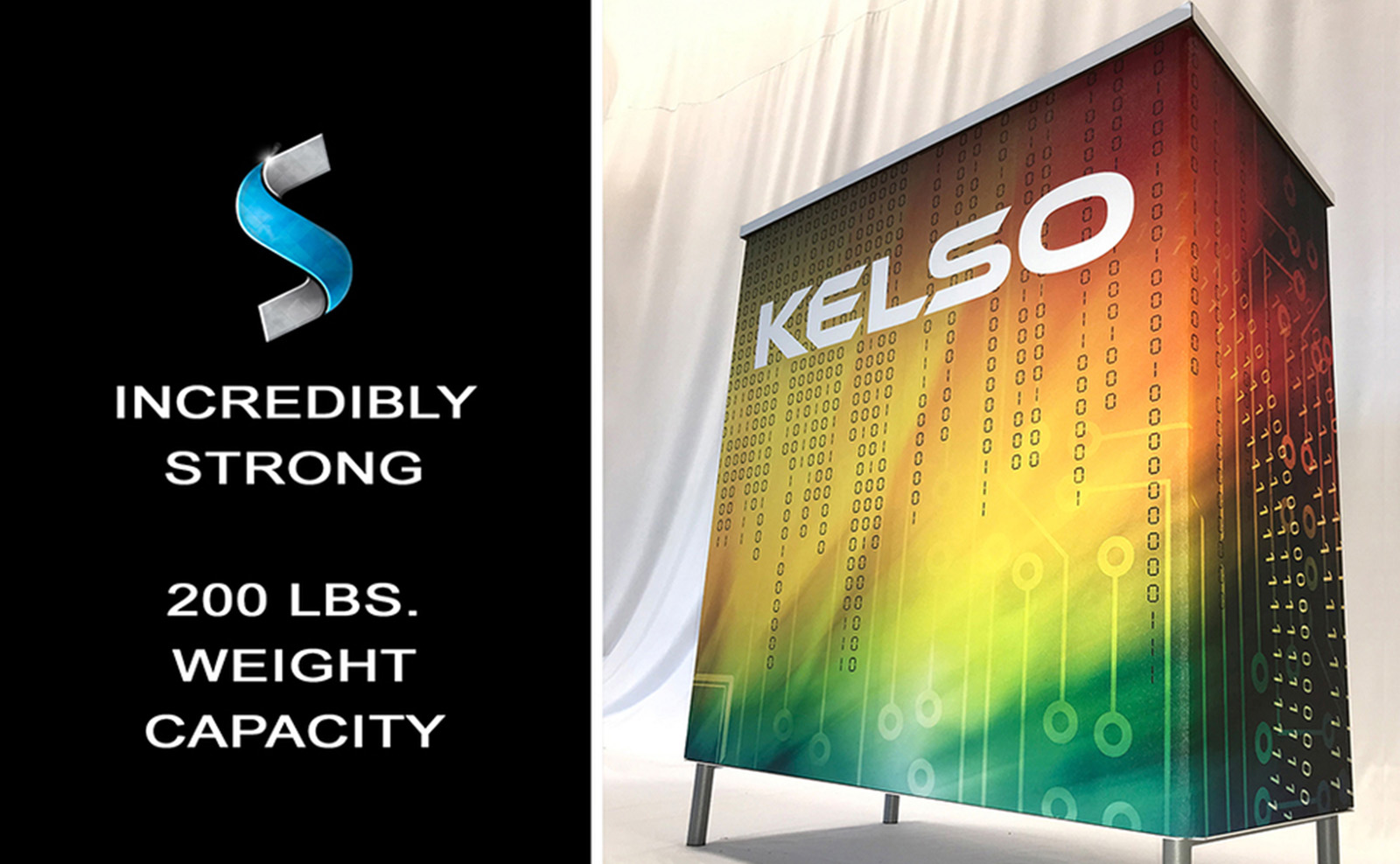 Rally Counter is a multifunctional brand messaging platform. It can be used as a workstation, demo station or product display stand. In all uses, it is a natural spot to meet with attendees.