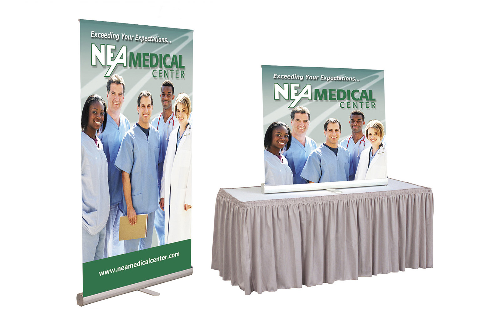 Quick, easy and durable exhibiting! Banner Stand 3000R is a basic banner stand that can be used as a single unit or with three in line to fill a 10ft booth space, Use it as a table top display or fully extended for maximum visibility.