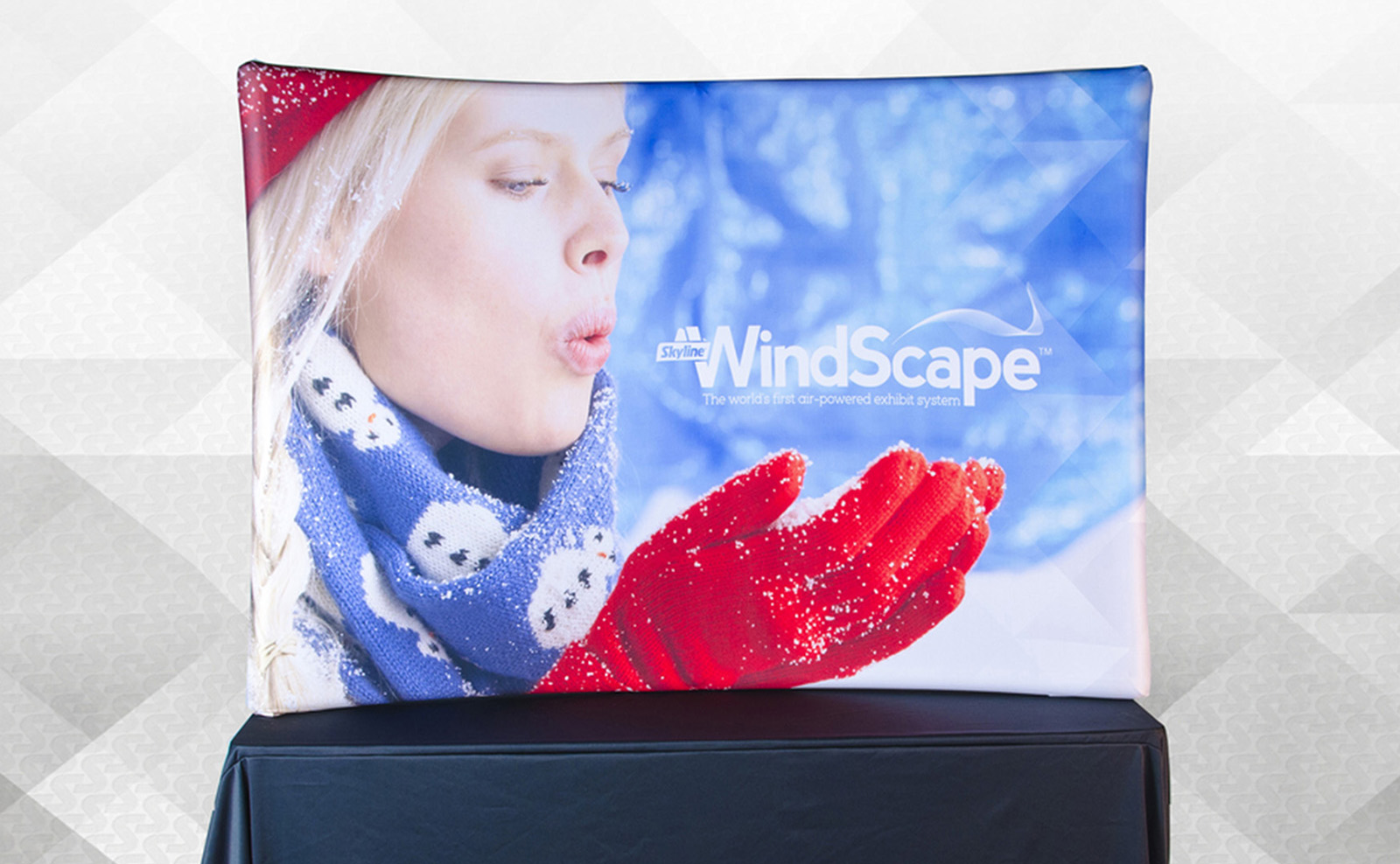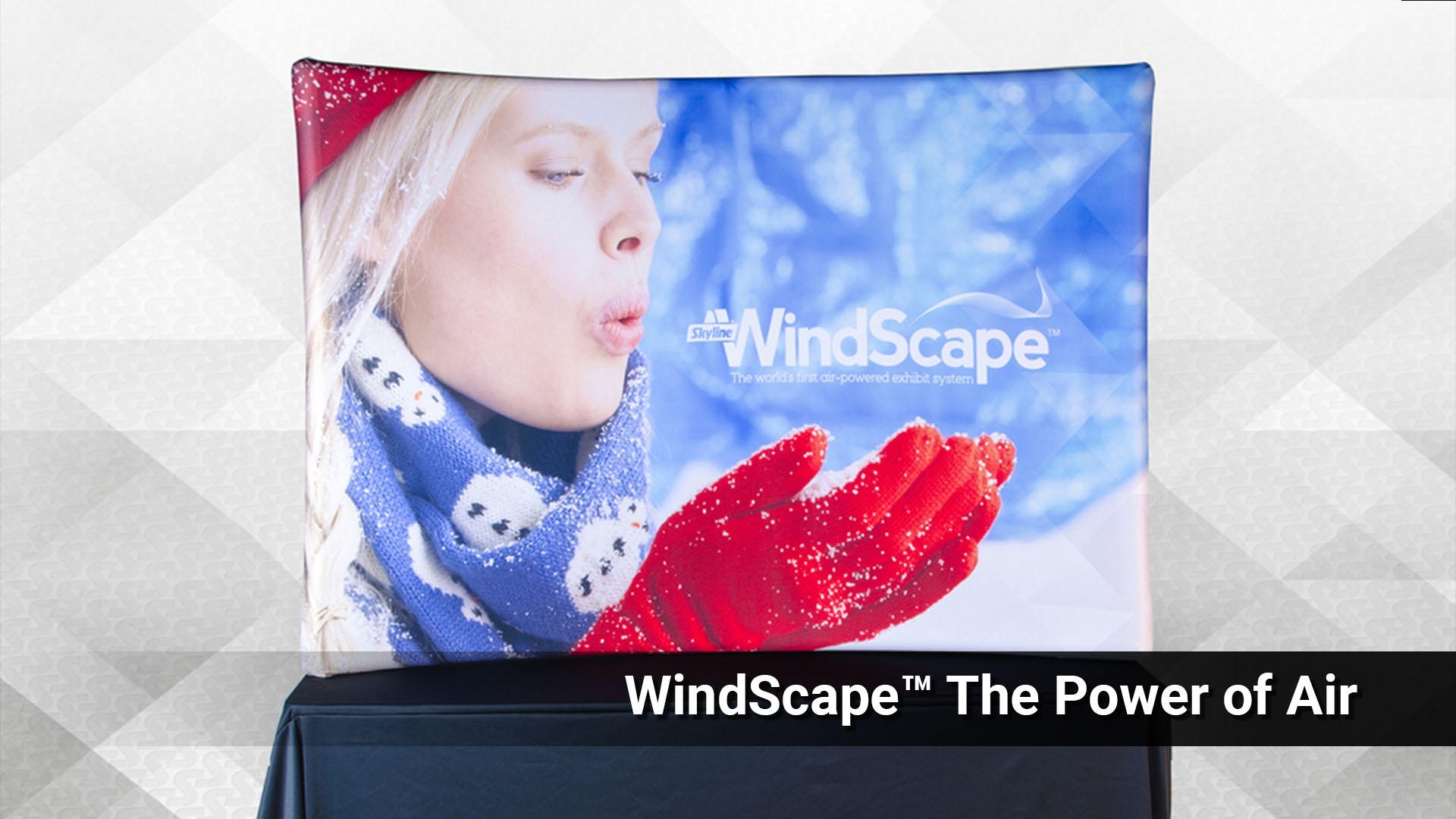 Skyline WindScape® is the world's first air-powered exhibit system! While it displays big, it packs small. Everything you need for installation display, inflator and hose packs in a backpack!